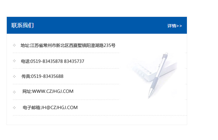 地址:常州市新北區友邦商務大廈1幢16、17層  電話:0519-85101652  傳真:0519-85112595  郵編:213022  網址:www_cz-jiayue_cn.hnyingding.com  郵箱:xiajifengaa@163.com